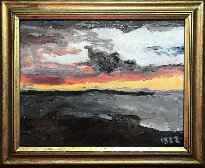 Introducing "Dark Cloud" – an evocative 8x10 masterpiece created in oil with Holy water and damar varnish (or acrylic and Holy water depending on what the picture is in the series). This original artwork, part of a poignant series painted by Dr.13 during his ICU stay awaiting heart surgery, is not a print.