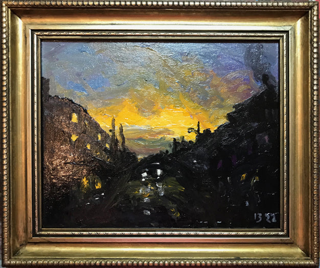 Introducing "Gower-Sun" – an evocative 8x10 masterpiece created in oil with Holy water and damar varnish (or acrylic and Holy water depending on what the picture is in the series). This original artwork, part of a poignant series painted by Dr.13 during his ICU stay awaiting heart surgery, is not a print. It's the real deal.