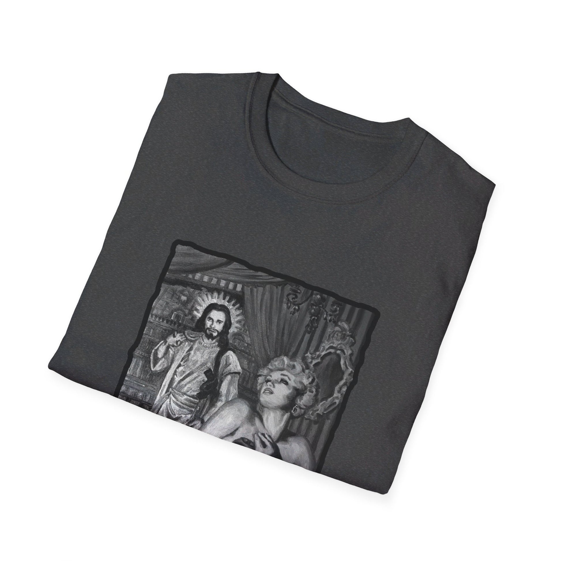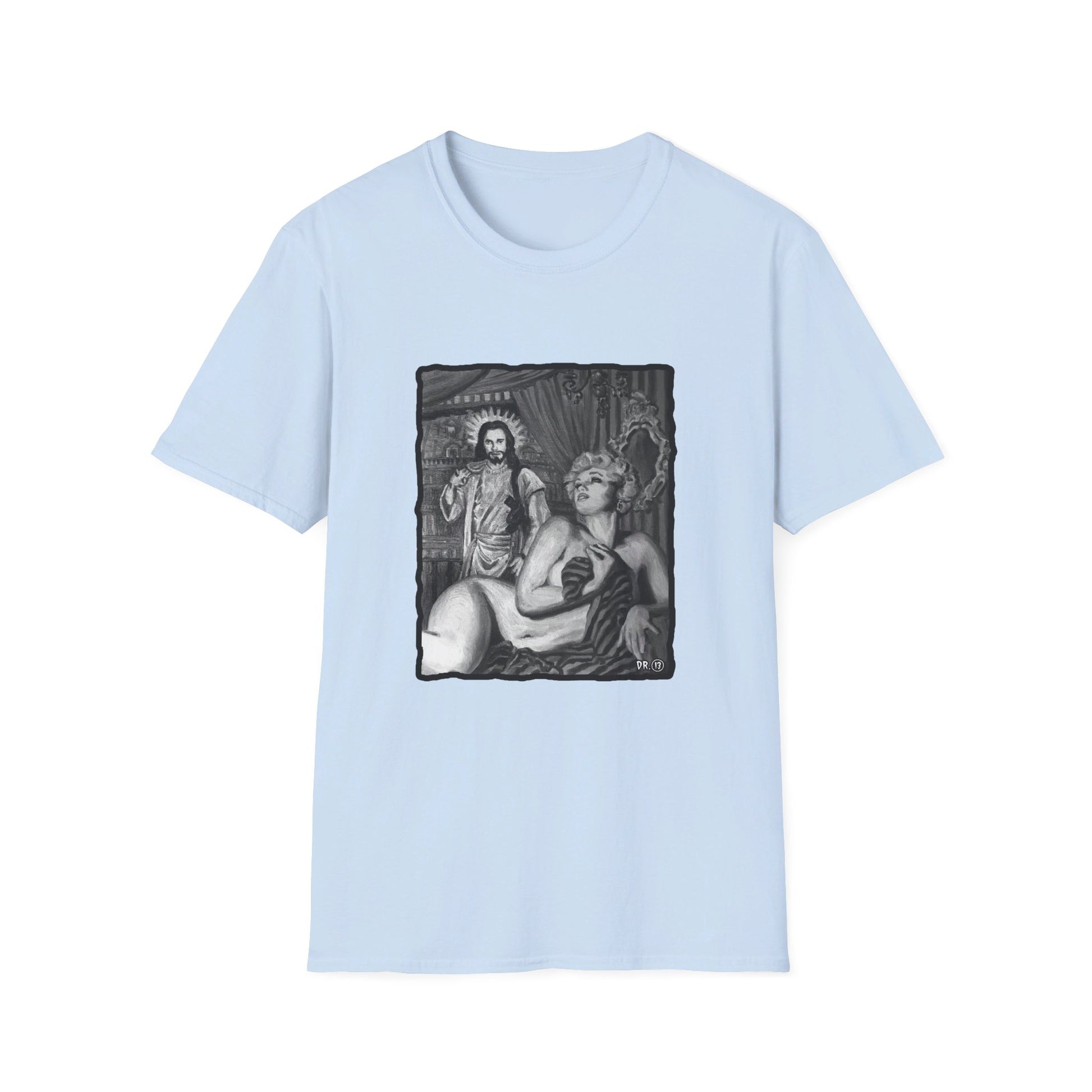 "Sorry babe, I have souls to save." Even Jesus can't resist a half-naked woman, but duty calls. This t-shirt nails it. One of our bestselling Artworks T-shirts.